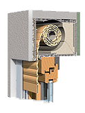 Von innen sind nach der Montage nur noch die Rollladenkastenhinterseite und der Revisionsdeckel des Kastens in Farbe der Anlage sichtbar.